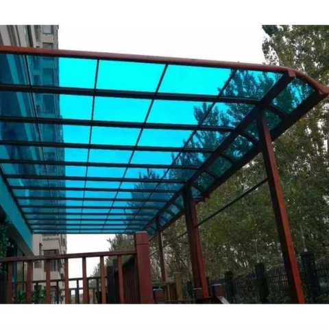 Hoja de policarbonato sólido azul para pérgola de techo de dosel exterior 4*8 pies 3mm-8mm de espesor diseño moderno para hoteles